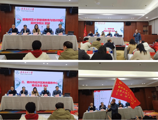 开班仪式由多多28曾素林博士主持。首先,赣南师范大学继续教育与培训学院院长吴林华同志致欢迎词,吴院长表示:欢迎各位学员参加本次的培训,希望大家以饱满的热情投入到本次研修中,在学习考察中收获满满,在学习中总结,在总结中应用,在应用中提炼升华。其次,学员代表赖继红老师发言,他认为:全体学员应珍惜这次学习良机,多听多看多思考,静心学习,潜心研究,用心感悟,积极互动交流,夯实专业素养,完善自我,带动工作室成员共同成长进步。最后,赣州经开区教体服务中心副主任杨洁同志作了动员讲话,她强调了本次培训活动的意义,对全体参训学员提出三点要求:一是珍惜学习充电机会,遵守听课纪律;二是积极探讨发言,大胆展示;三是培训期间遵守纪律,外出时注意安全。