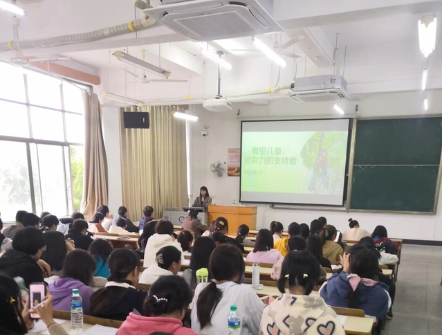 20231111下午,赣州市保育院教务主任邹璐在三教309举行题为“看见儿童,做有力的支持者”名师讲坛,学院学前教育专业部分教师和学生代表100余人参加。讲坛由教育科学学院学前教育系主任田园园主持。