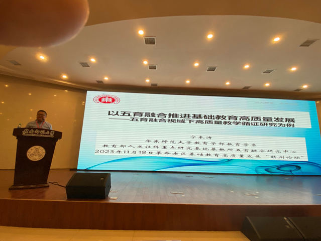 教育部人文社科重点研究基地华东师范大学基础教育改革与发展研究所“五育融合”研究中心主任、华东师范大学教育学部宁本涛教授作主题报告