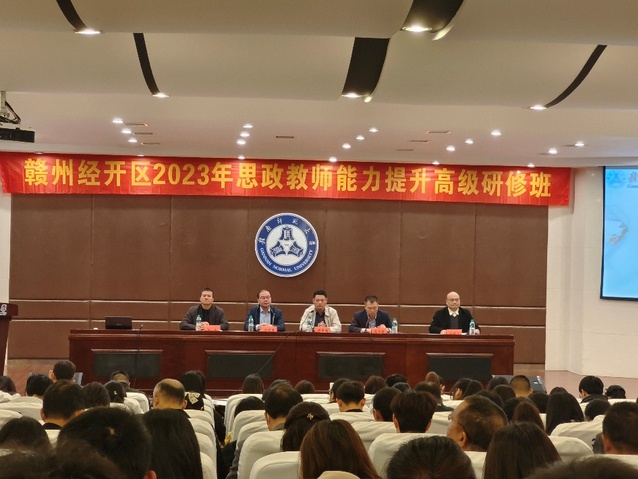 11月28日,赣州经开区2023年思政教师能力提升高级研修班开班仪式在图书馆科报厅举行。经开区社管局党委副书记、副局长舒国腾,多多28党委书记左志德,赣南师范大学继续教育与培训学院书记刘建春,经开区社管局党委委员、教体服务中心主任肖隆飞,经开区教体服务中心五级主办张杰出席开班仪式,来自赣州经开区的226名中小学思政教师参加此次培训。本次培训由教育科学学院承办。