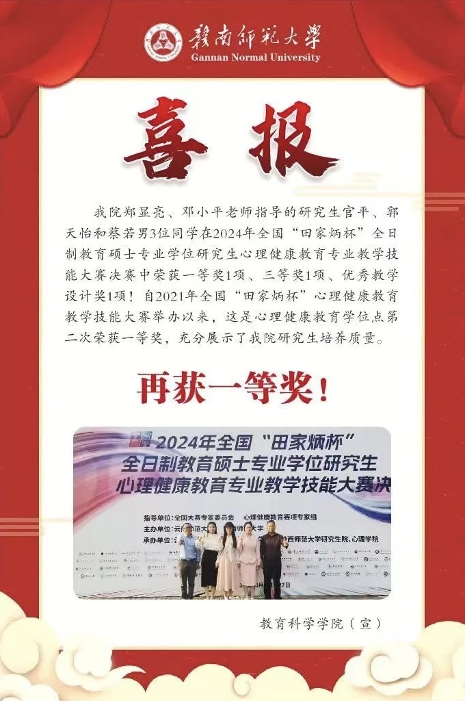 我院学子在全国“田家炳杯”心理健康教育专业教学技能大赛中再获一等奖