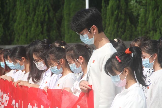接着,团员青年面对鲜艳的团旗,高举右拳,重温入团誓词,铿锵有力的誓词回荡在现场每一位团员青年的心中,激励每一位团员青年不惧风雨、勇挑重担、不负时代,不负韶华!