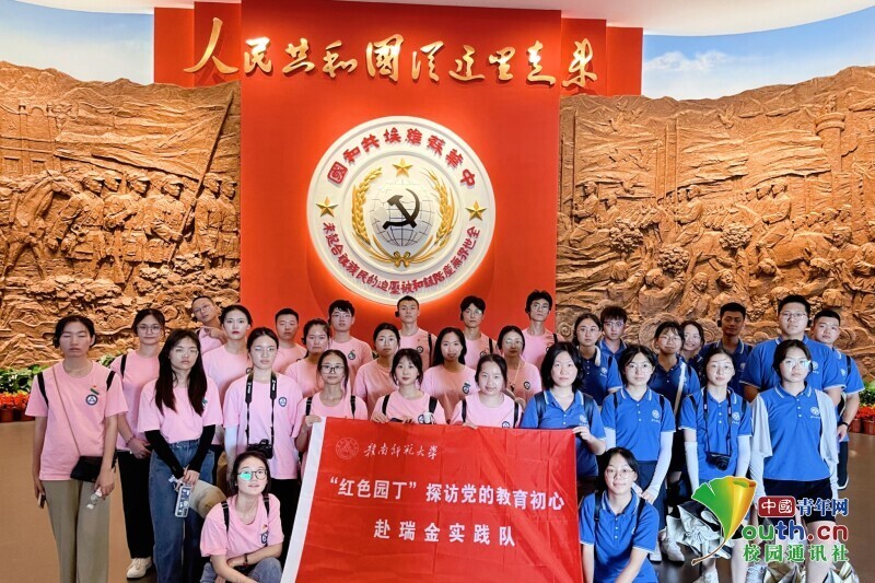 7月15日,多多28“红色园丁助力乡村振兴”暑期社会实践团联合华东师范大学孟宪承书院,集聚黄浦江与赣江之畔的师范教育力量,组成“双江之师”协同提质队伍,共赴红色圣地——瑞金。一同参观走访瑞金市红色革命旧址与瑞金中央革命根据地历史博物馆,在解说员的引导下,实践团队员们一同重温革命事迹,感受红色力量,继承和发扬先辈革命精神。