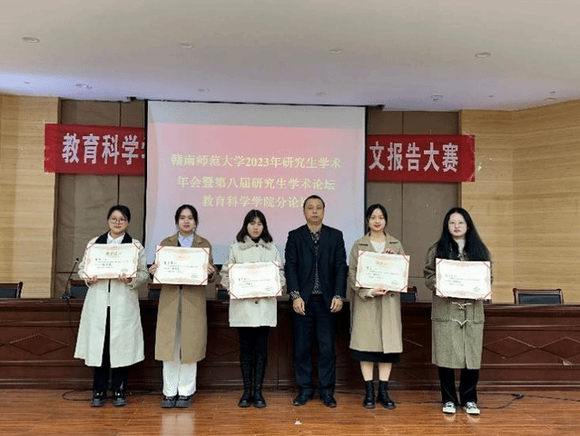 经过紧张的现场统分环节,主持人公布了比赛结果,到场领导和评委老师为参赛选手颁发奖状并合影留念。最后,邱院长用“真”、“新”、“高”、“好”四字对此次论坛作了高度概括,即研究问题真,研究内容和方法有创新、研究生参与度高、活动组织好、评委专家点评好,并对研究生们的踊跃参与和嘉宾老师的精彩点评表示感谢。邱院长指出,一年一度的学术报告会对营造良好学术交流氛围的积极作用,希望教科院广大研究生学子深入贯彻落实习近平总书记于大力弘扬教育家精神的重要指示,坚定“躬耘教坛、强国有我”的初心决心,不断提高学术素养和创新能力,成长为党和人民满意的“四有”好老师。